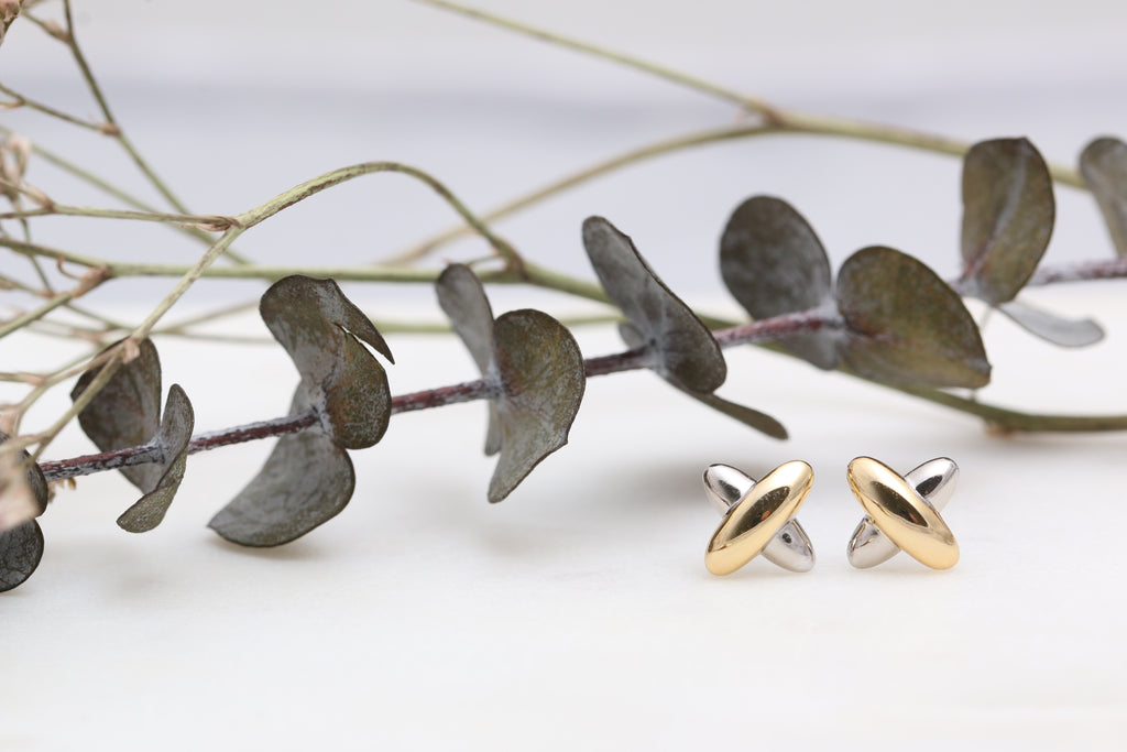 These two tone mixed metal studs feature a minimalistic design. These measure approx 8mm