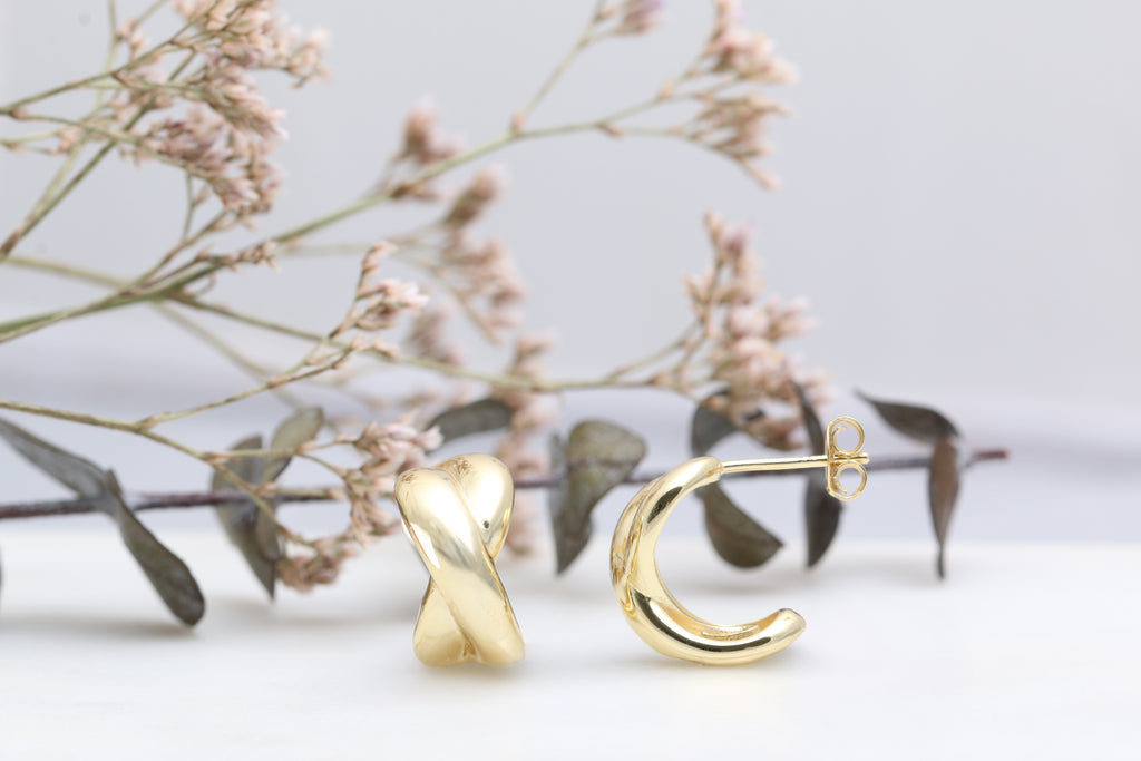 These half hoop studs are the perfect pair earrings for every day wear. These are made of gold vermeil.