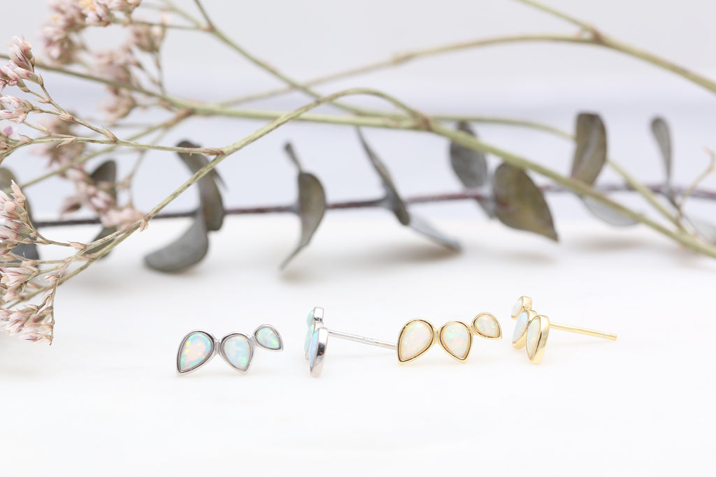 These opal climbers measure approx 13mm and are available in sterling silver or gold vermeil.